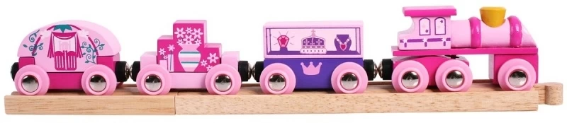Kinderen zullen genieten van deze fantastische trein bestaande uit een mooie rose locomotief en 3 schattige wagonnetjes. Geleverd met twee secties van de houten rails en is compatibel met andere houten spoorwegsystemen!