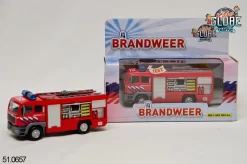 Metalen brandweerwagen van Kidsglobe met het bekende pull-back systeem. Je trekt de auto iets naar achter en laat die vervolgens los.
