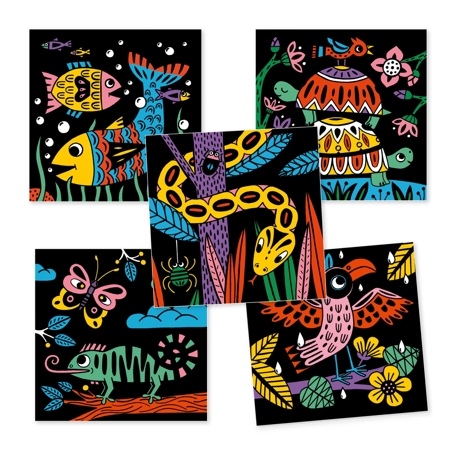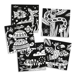 Maak prachtig schilderijtjes met deze bijzondere kleurplaten in het thema “dieren” van Djeco. Kleuren zonder buiten de lijntjes te gaan.