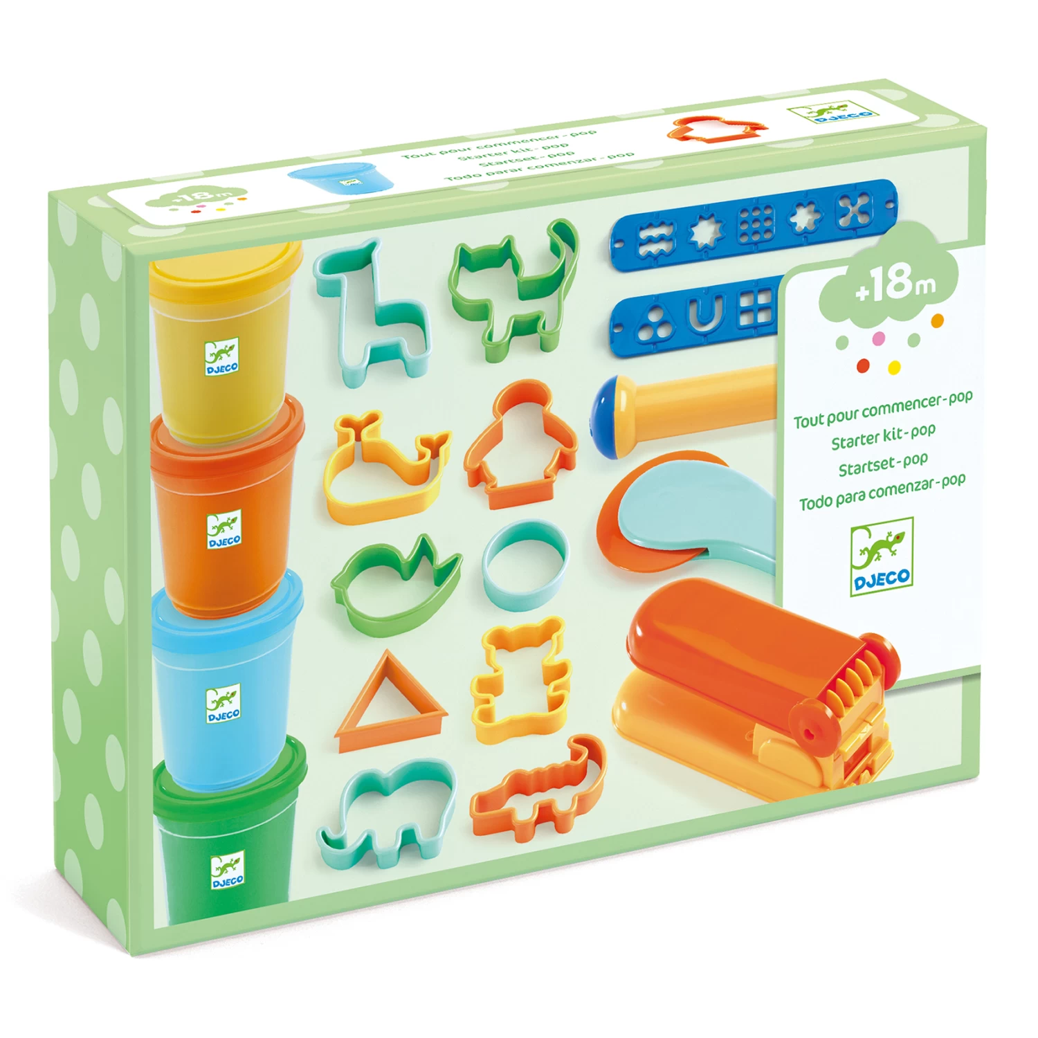 Een eerste complete kleiset voor kinderen, vanaf 18 maanden van het merk Djeco. 15 accessoires en 4 potten ultrazachte en geurende boetseerklei om in alle vrijheid te patrouilleren en te creëren.