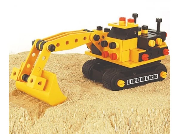 160-delige constructieset. Loader met rugpsbanden, draaibare opbouw en beweegbare graafarm.