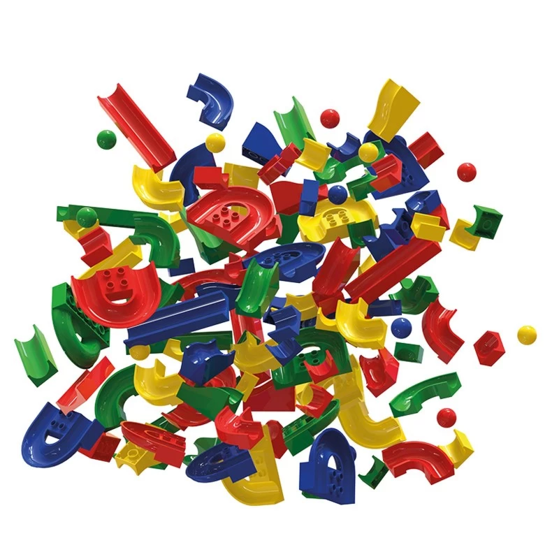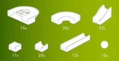 Met deze set wordt het assortiment van bouwstenen op een nuttige manier met nog 128 baanelementen en knikkers uitgebreid. Nu kunnen er nog grotere knikkerbanen worden gebouwd. Met deze aanvulling kunnen de mogelijkheden van de knikkerbaan individueel en nog creatiever worden uitgewerkt.