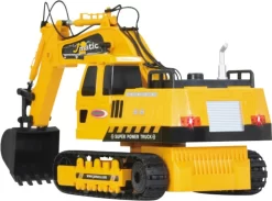 Radiografisch bestuurbare graafmachine met rupsbanden en LED verlichting. De cabine kan 660 graden roteren, zowel met de klok mee als tegen de klok in. Programmeerbare functies.