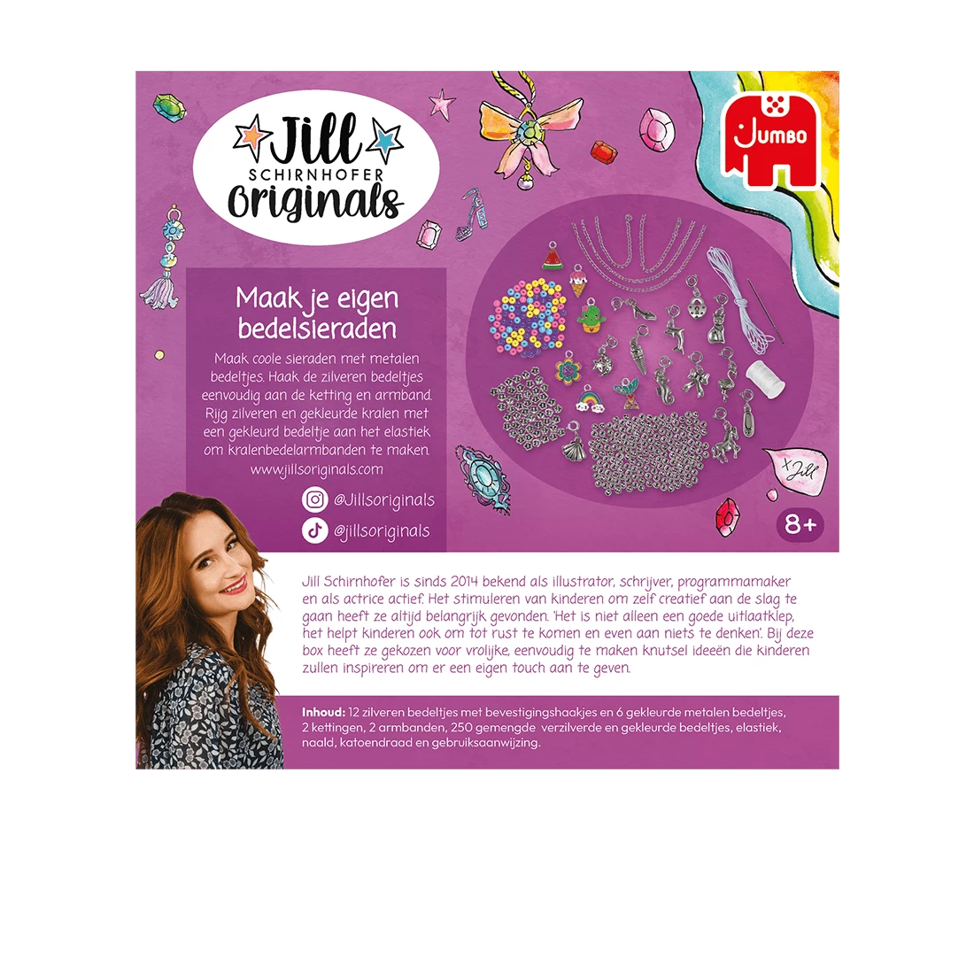 Maak coole sieraden met metalen bedeltjes, ontworpen door Jill! Deze knutsel set is ideaal voor jongens en meisjes vanaf 8 jaar die altijd al hun eigen sieraden hebben willen leren maken. Met deze unieke set knutsel je armbanden met zilveren bedeltjes en vrolijk gekleurde kralen. Hang de zilveren bedeltjes eenvoudig aan de schakels van de zilveren ketting en de armband om een unieke draai aan jouw creatie te geven!