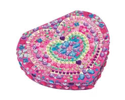 Versier het hartvormige sieradendoosje met de glinsterende plaksteentjes.Β Eenvoudig de kleur van het steentje matchen met het nummer op het doosje. Het juwelendoosje is met fluweel gvoerd en voorzien van een spiegel, perfect voor de schatten van ieder meisje.