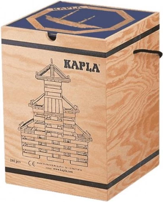 Kapla kist met deksel 280 plankjes e3n boek met meer veeleisende constructies om verschillende soorten modellen en balansen te ontdekken. Aanbevolen vanaf 9 jaar.