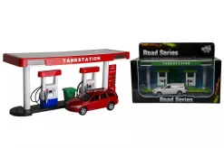 Tankstation met geluid. Met dit tankstation wordt de fantasie weer een stukje echter, ze kunnen nu na een paar rondjes rijden, even gaan tanken met de auto. Net als papa en mama. Compleet met auto Volvo. In een mooie showdoos.