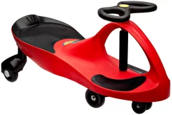 Zet je voeten voor op de plasmacar, beweeg het stuur heen en weer en je gaat vanzelf rijden. Hiermee kun je ook achteruit rijden. Leverbaar in de kleuren blauw en rood.. Onder de zitting is een kleine opbergruimte.