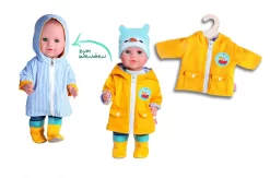 Anorak welke aan 2 zijden draagbaar is. De gele buitenkant geeft de looks van een regenjas en de blauw-wit gestreepte binnenzijde past mooi in een maritieme look.
