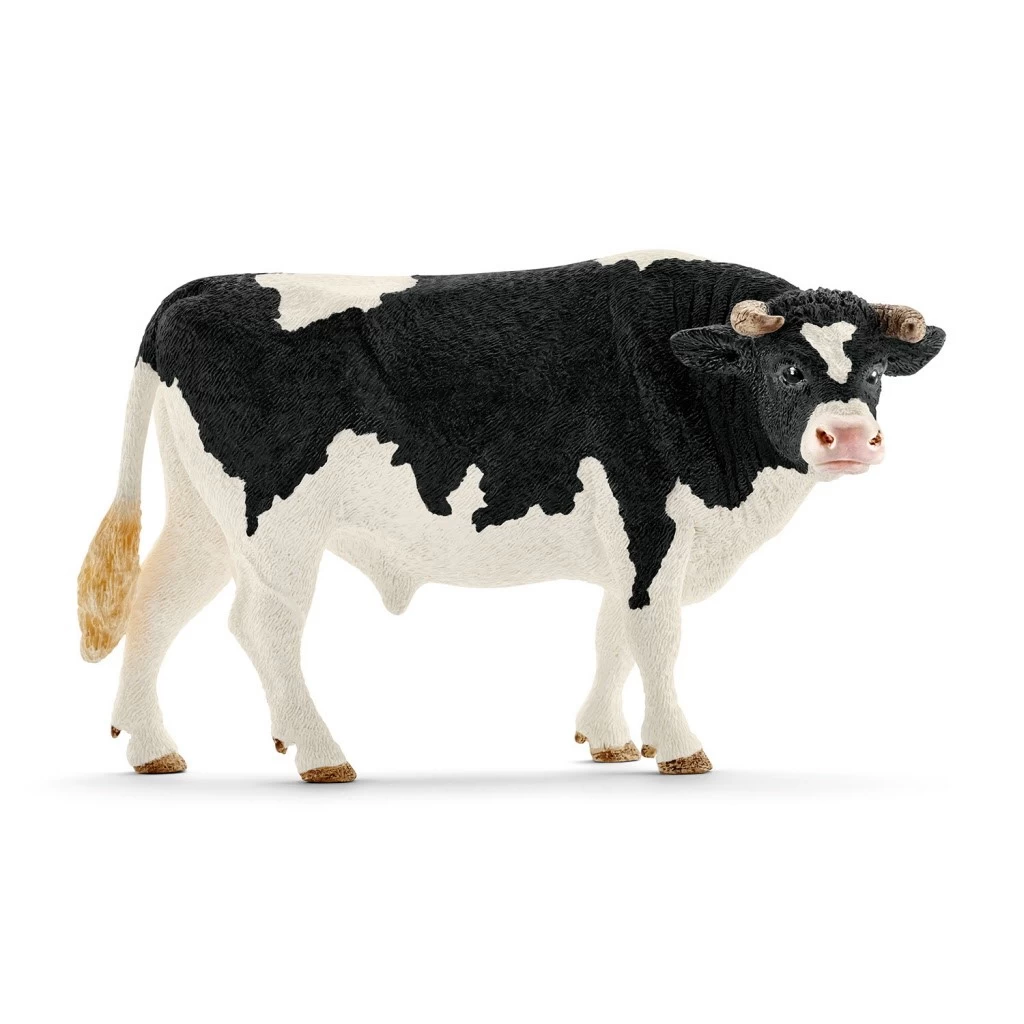 Zwart bonte stier uit de boerderij speelwereld van Schleich.