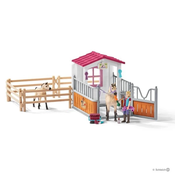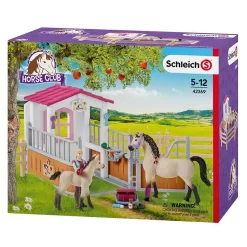 Deze paardenbox met paarden en verzorgster een speelset uit de Schleich Horseclub wereld. Schaal 1 : 24.