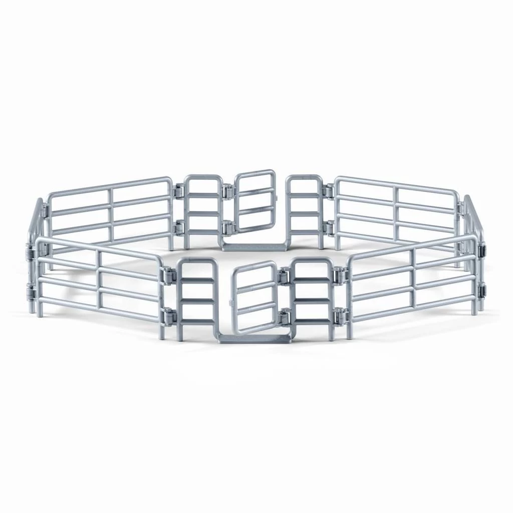 Het hek is uitgerust met poorten. De verschillende hekonderdelen kunnen op verschillende manieren worden aangesloten en zijn desgewenst te combineren met andere Schleich-hekken.