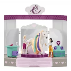 In de beautysalon van schleich® HORSE CLUB Sofia’s Beauties vind je alles om je uit te dossen voor stalfeesten, paardenverjaardagen of de eerste schooldag van het jongste veulen. Op het podium kan ieder dier pronken met zijn nieuwe accessoires. En de manen en staart kunnen zelfs heel eenvoudig worden gewisseld. Heb je de la al ontdekt?