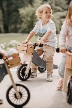 De loopfiets is handgemaakt van snelgroeiend hout. Voor elke Kinderfeets Tiny Tot Plus Slate Rose loopfiets die is verkocht word er een boom geplant in samenwerking met Trees for the Future!