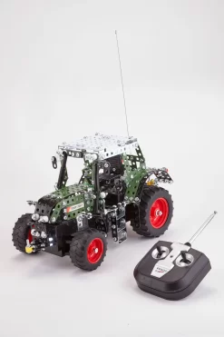 Bouwdoos met 574 onderdelen uit de Tronico Junior serie. Betreft de tractor Fendt Vario 313. De tractor is radiografisch bestuurbaar, kan zowel vooruit- als achteruit- rijden, heeft volledige stuuurfuncties, terreinbanden en een trekhaak