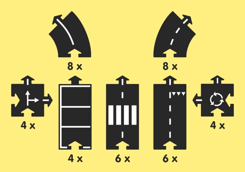 De Waytoplay King of the Road flexibele autobaan biedt met 40 rubberen wegdelen een mooie set om een eigen autoweg te ontwerpen. Rij hieroverheen met je eigen speelgoedauto’s, motoren of gebruik het als landingsbaan voor je vliegtuigjes! De King of the Road flexibele autobaan is groot (6,30 m.) en speciaal aanbevolen voor kinderen die heel erg van ‘met autootjes spelen’ houden, maar ook voor scholen en kinderdagverblijven.