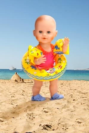 Set  van een zwemband en zwemvleugeltjes voor de pop.